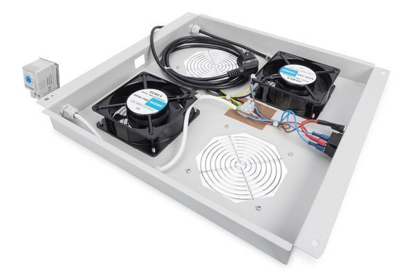 Die Dachlüftereinheiten sind geeignet für alle Netzwerkschränke der Unique & Unique Light Serie, sowie alle Serverschränke der Unique Server-N Serie. Im Dachmodul des Schrankes kann die Installation schnell und einfach mit wenigen Schritten vorgenommen werden. Ausgestattet mit einem EIN-/AUS-Schalter sowie einem regalbarem Thermostat bietet jede Lüftereinheit die beste Einsatzbereitschaft nach individuellen Bedürfnissen. Das Modell ist erhältlich in den Standardfarben Grau (RAL 7035), sowie Schwarz (RAL 9005), wahlweise mit zwei oder vier Lüftern ausgerüstet.