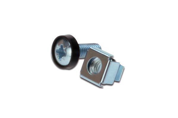 Der DIGITUS® Befestigungssatz enthält ein Set mit 50 Sätzen Schrauben, Käfigmuttern und Unterlegscheiben in der Größe M6. Geeignet für Schrankeinbauten.