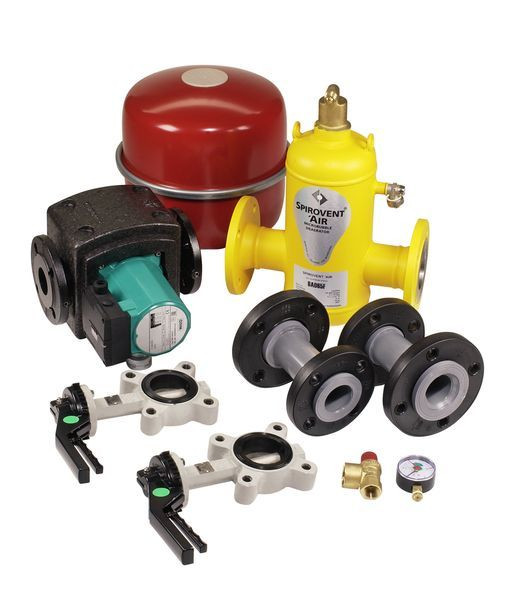 Hocheffizienz Sole-Zubehörpaket bestehend aus vormontierter Anschlussgruppe (Anschluss eines Ausdehnungsgefäßes, Schnellentlüfter, Sicherheitsventil 2,5 bar und Manometer) mit absperrbarem Kappenventil zum einfachen Einbau des Niederdruckpressostaten SWPR 200 für die Überwachung des Solekreislaufs bei Leckagen, Ausdehnungsgefäß 18 l / 0,5 bar Vordruck, Kugelhähnen, Hochleistungsentlüfter mit Mikroblasenabscheidung und einer Hocheffizienz-Solepumpe mit den Regelungsarten druckkonstant (?p-c), druckvariabel (?p-v) und fest hinterlegten Drehzahlstufen, inkl. Kältedämmschale für Erdkollektoren gemäß Projektierungsunterlagen (Solekreisverteiler und Verrohrung nicht im Lieferumfang). Bei abweichenden Dimensionen bzw. bei Erdsonden ist die freie Pressung zu überprüfen.