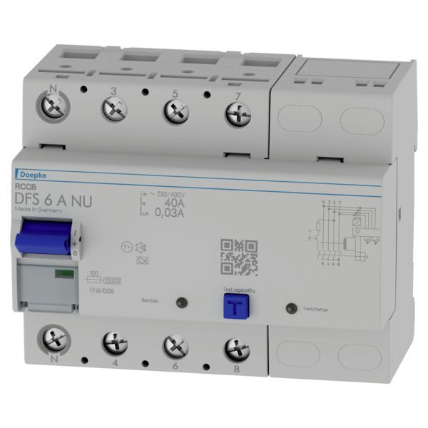 | Kurzbeschreibung | FI-Schutzschalter 4p, 40A, 0.03A, Typ A, Netzüberwachung, N links |