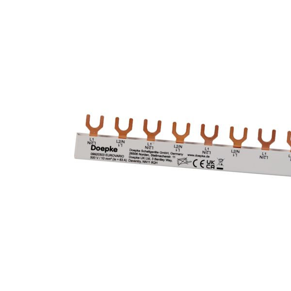 | Kurzbeschreibung | Gabelsammelschiene 2p, 8 TE, 63A, 500V (AC), ((L1, L2/N) x 4) |