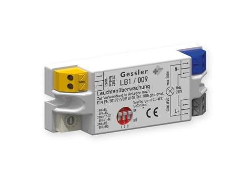Unter Einsatz des Gessler LB1/009-Bausteins können Rettungs- und Sicherheitsleuchten in einem Stromkreis (Mischtechnik) realisiert werden erhebliche Einsparung bei der Installation bzw. Reduzierung der Brandlast Der Baustein ist sowohl für AC- als auch für DC-Netze geeignet Die angeschlossenen Leuchten werden überwacht und über den Schalteingang mit der Allgemeinbeleuchtung mitgeschaltet Datenübertragung erfolgt auf der Versorgungsleitung Bei Störung einer einzelnen Leuchte kann der genaue Standort auf dem Display des LPS-/CPS-Systems angezeigt werden Nur mit Gessler System kompatibel Adressen 1-20 Einschaltsrom max- 45A/ 5ms Anschlussspannung 230V AC / 220 V DC Leistungsbereich 2-200 W