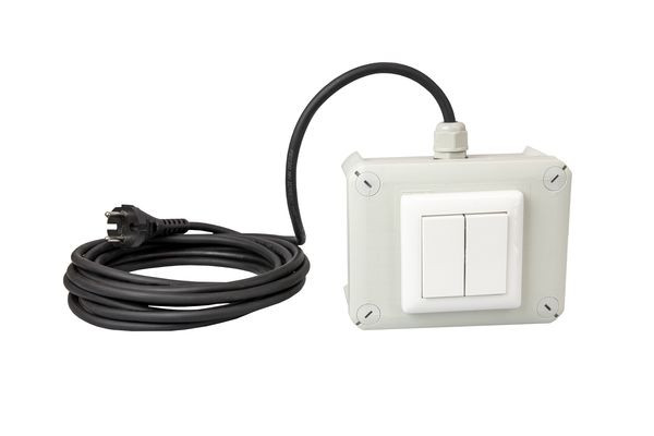 | Kurzbeschreibung | DOTLUX Draadloze zender met 4-voudige drukknop mobiele versie in behuizing met 5m kabel en Schuko plug |