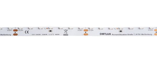 | Kurzbeschreibung | DOTLUX Bande LED SIDEVIEW 48W 8mm 4000K IP20 Rouleau de 5m avec 50cm de câble de connexion des deux côtés |