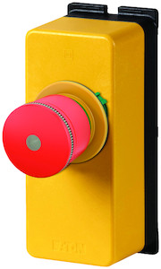 NOT-HALT-/NOT-AUS-Taste, RMQ-Titan, Pilzform, 30 mm, 1 S, 1 Ö, beleuchtbar mit LED-Element, Zugentriegelung, rot, gelb