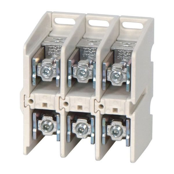 K Anschlussklemmen, für AL und CU, eine Seite rund, eine Seite flach, Bemessungsbetriebsstrom Ie = 250 A, Pole = 3, Anschlussquerschnitte: Kupfer-Rundkabel mehrdrähtig, Sektorkabel mehrdrähtig, Rundkabel eindrähtig, Sektorkabel eindrähtig und Aluminium-Rundkabel eindrähtig, Sektorkabel eindrähtig = 1x 35 bis 150 mm² oder 2x 16 bis 70 Aluminium-Sektorkabel eindrähtig = 1x 50 bis 120 oder 2x 35 bis 50 Kupferband 1x (4x 16 x 0,8) bis 2x (6 x 16 x 0,8) oder Kupferschiene = 18 x 4 mm, Hinweise: Umbausätze von Bandanschluss in Kabelanschluss separat erhältlich, Klemmenabdeckung separat verfügbar