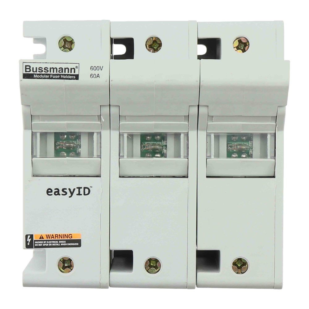 | Kurzbeschreibung | Sicherungshalter, Niederspannung, 60 A, AC 600 V, DC 600 V, 200 kA, 120 x 83 x 125 mm, J, 3P, UL, CSA, Neon-Kennmelder, Schalttafelmontage |