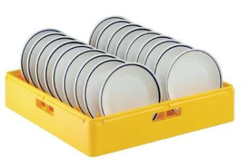 Korb (Kunststoff gelb) für flache Teller / Untertassen, Fassungsvermögen: 18 Teller, D=240 mm oder 27 Untertassen, D=150 mm,