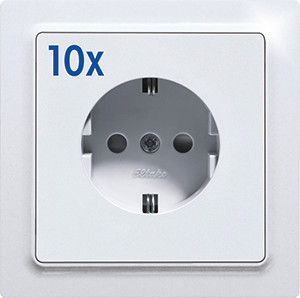 | Kurzbeschreibung | 10x Schutzkontakt-Steckdose mit Oberteil reinweiß glänzend E-Design55 ohne Rahmen |