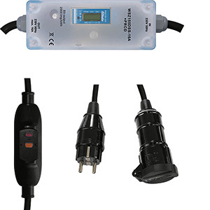 Schutzart Gehäuse: IP68, Schutzart Stecker/Kupplung: IP44, Schutzart PRCD: IP66. Gehäuse-Abmessungen 155?x?60?x?82?mm, Anschlussleitung 1,5 m (incl. Stecker und Kupplung). Genauigkeitsklasse B (1%). Dieser mobile Wechselstromzähler misst die Wirkenergie anhand des zwischen dem Eingang und dem Ausgang fließenden Stromes. Der Eigenverbrauch von nur maximal 0,4 Watt Wirkleistung wird nicht gemessen und nicht angezeigt. Zyklisch wechselt die Anzeige auf dem Display alle 10 Sekunden zwischen der aufgelaufenen Wirkenergie in kWh und dem Momentanverbrauch in kW. Der Anlaufstrom ist 20?mA. Das Display kann nur mit Stromversorgung abgelesen werden. Der Verbrauch ist jedoch nichtflüchtig gespeichert und wird nach einem Stromausfall sofort wieder angezeigt. Die Digitalanzeige hat 7 Stellen. Bis 99999,99 kWh werden zwei Nachkommastellen angezeigt, ab 100000,0 kWh nur noch eine. Der mobile Wechselstromzähler ist mit einem Haltebügel für eine einfache Montage ausgestattet. Dieser kann, falls nicht notwendig, einfach entfernt werden. Der Leistungsbezug wird mit einer 2000-mal je kWh blinkenden LED angezeigt.