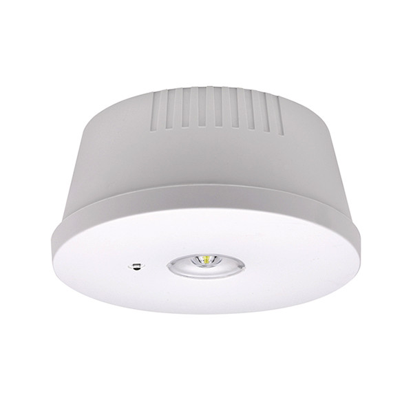 Einzelbatterie-Notleuchte mit 3 h Notlichtdauer für Deckenaufbaumontage . Funktionskontrolle und Selbstüberwachung , Ständige Ladungsüberwachung, Automatischer, wöchentlicher Funktionstest und jährlicher Betriebsdauertest, Status-Auslesefunktion über DALI-2-Bus (DALI Teil -202), Anzeige der Testergebnisse durch farbige LEDs (grün/rot). Betrieb in Bereitschaftsschaltung. Lichtaustritt nach unten und optimiert zur Ausleuchtung von Räumen oder Korridoren. Inklusive Akku mit verpolungssicherem Steckanschluss.