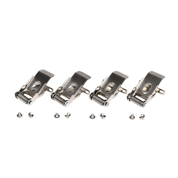 Montageclip-Set für LED-Deckeneinlegeleuchten JUNA. Für gesägte Deckenöffnungen 585 x 585 mm oder 610 x 610 mm. Für Deckenstärken bis 15 mm. Der Leuchtenrand liegt bei dieser Montageart mit 14,7 mm Stärke außen an der Decke an..