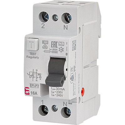 Fehlerstromschutzschalter, EFI-P2 A X 25/0.03, Stromart A, Tiefe (mm) 70, IP-Schutzart IP20, Montage DIN rail, Anzahl der Pole 1+N, Bemessungsstrom (A) 25, Bemessungspannung V 240, bemessungsbedingter Kurzschlussstrom Inc (kA) 10, Bemessungsfrequenz (Hz) 50/60, Bemessungsfehlerstrom IDn (A) 0.03, Standard IEC/EN 61008, Klemmen (mm2) 1-25, Auslösezeit unverzögert, Typ A