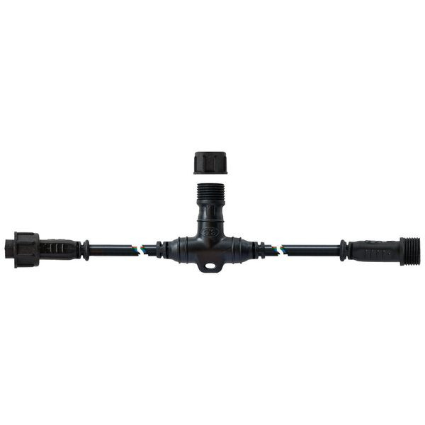 Die 3m lange Verbindungsleitung, für RGB-Anwendungen, verfügt über 1x Stecker und 6x Buchse und kann sowohl für 12V, als auch 24V Anwendungen verwendet werden. Die Steckverbindung wird zusätzlich durch eine Überwurfmutter gesichert, so dass sich diese nicht ungewollt lösen kann und vor Feuchtigkeit geschützt ist. Dadurch wird die Schutzart IP65 erreicht, was wiederum dafür sorgt, dass das Stecksystem im Außenbereich eingesetzt werden kann. Im Lieferumfang sind 6 Endkappen enthalten, um nicht benötigte Buchsen verschließen und somit vor Feuchtigkeit schützen zu können.