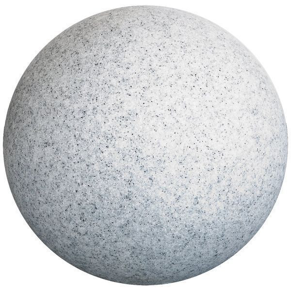 Dekorative Kugelleuchte für den Außenbereich aus Kunststoff in Stein-Design. Dank der E-27 Fassung können sowohl LED-Leuchtmittel bis max. 10W, als auch Energiesparleuchtmittel bis max. 25W eingesetzt werden. Je nach verwendetem Leuchtmittel lassen sich die unterschiedlichsten Effekte erzielen. Da die Kugelleuchte noch in zwei weiteren Größen erhältlich ist, lassen sich auch kleine Gruppen der Leuchten als absoluter Blickfang zusammen platzieren. Dank des im Lieferumfang enthaltenen Erdspieß hat die Kugel jederzeit einen sicheren Stand. Die 2m lange Anschlussleitung ist mit einem Konturenstecker versehen. Die ta beträgt -20°C - 50°C.