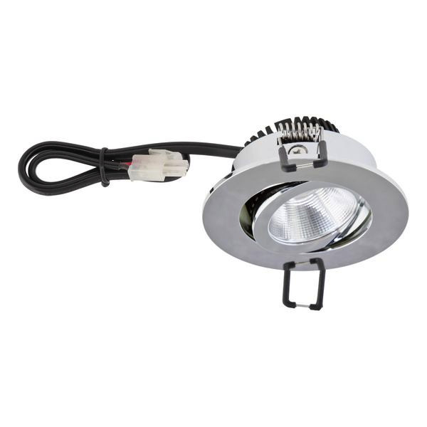 Mit der COB-LED Deckeneinbauleuchte lassen sich vielfältige Anwendungen im Innenbereich, wie z. B. Effektbeleuchtung, Raumbeleuchtung, Akzentuierte Beleuchtung und vieles mehr realisieren. Da außerdem die MM-Kennzeichnung gegeben ist, lässt sich diese sogar im Möbelbau verwenden. Zusätzliche Kosten für Leuchtmittel entfallen bei dieser Leuchte, da die Leistung von einem fest verbauten LED-Chip geliefert wird. Dank der Konstantstromversorgung lassen sich auch mehrere Leuchten über ein Netzgerät betreiben, wobei hierbei der optional erhältliche 6-fach-AMP-Verteiler (P-LEDAMP006) verwendet werden kann. Die 30cm lange Anschlussleitung ist mit einem AMP-Stecker versehen. Die Dimmart ist abhängig vom jeweils verwendetem Netzgerät. Sofern jede Leuchte mit einem eigenen Netzgerät betrieben werden soll, wäre die perfekte Ergänzung das PLD109, welches zum einen einfach über den AMP-Stecker mit der Leuchte verbunden werden kann und außerdem sowohl über Phasenan- und Phasenabschnitt dimmbar ist. Der Schwenkwinkel beträgt 20°.