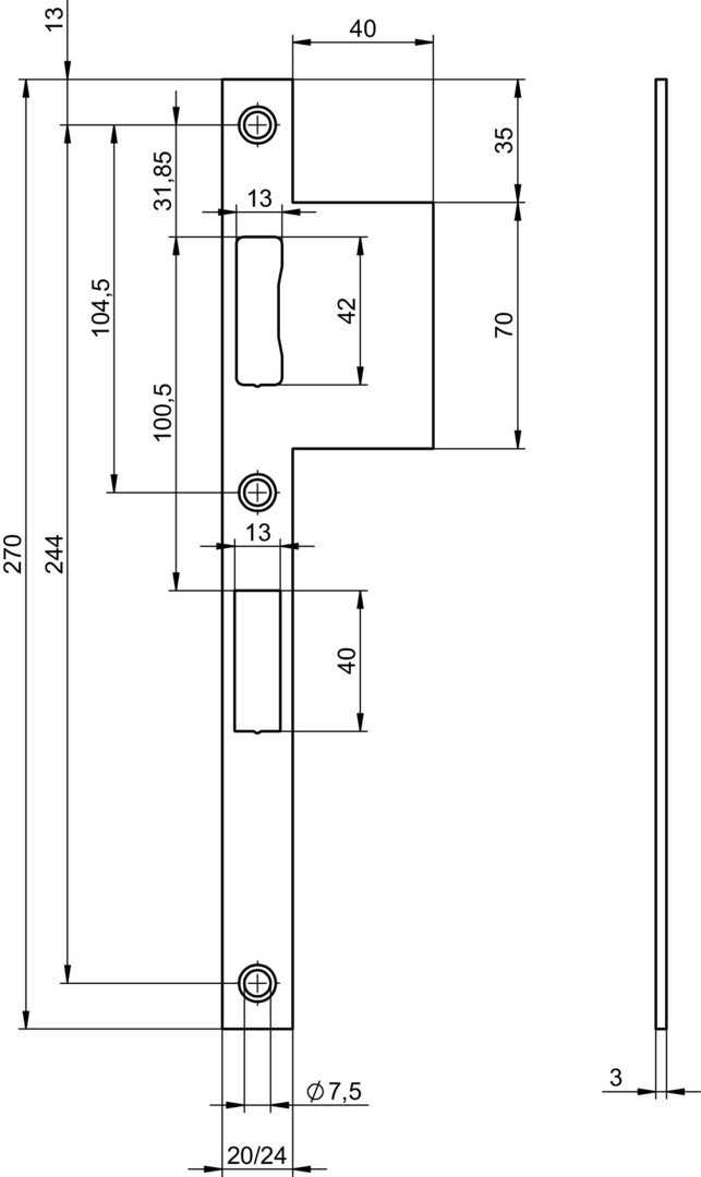 | Kurzbeschreibung | Schließblech OS F/R F3x20x270,L40, EST, L/R |