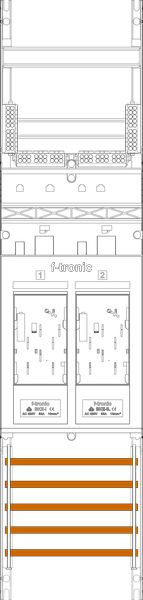 Zählerfeld 1-feldrig, 2-Zählerplätze eHZ, Höhe 1050 mm, Breite 250 mm, Sammelschienensystem 5-polig