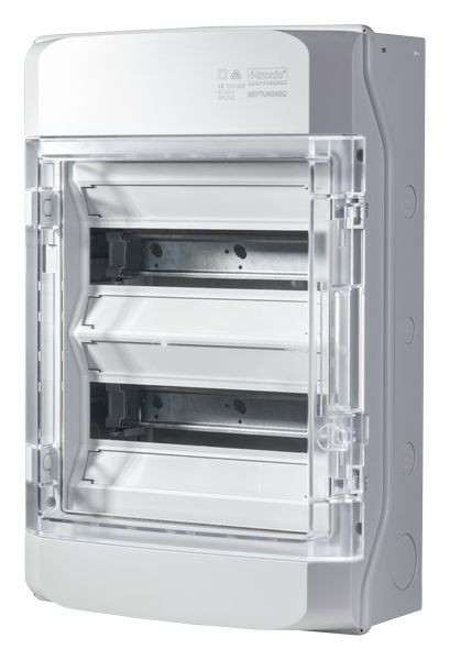 | Kurzbeschreibung | AP Feuchtraumverteiler IP65, NEPTUN24SQ, 2-reihig, mit Belüftungssystem |