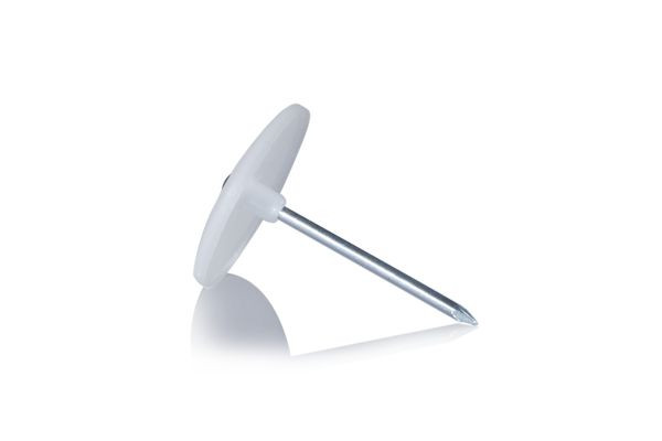 Nagelscheibe mit Stahlnagel. Durchmesser 35mm. Nagel: 3 x40 mm. Farbe natur.