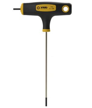 Felo 31303560 Felo Doppel-Metrischer Sechskant-T-Griff, 3,0 mm x 150 mm Langes Ende für präzises Eindrehen schwer zugänglicher Schrauben. Das Griffende verfügt über einen kurzen Schraubendreher für hohe Drehmomente. Aufhängeöse für einfache Aufbewahrung. Ergonomischer 2-Komponenten-Griff mit Softgrip-Beschichtung reduziert Druckstellen. Harter Kunststoffkern für Langlebigkeit, auch bei höchsten Drehmomenten. Matte Chrombeschichtung mit schwarzen Spitzen. Griffbreite: 100 mm. Klingenlänge: 150 mm. Oberfläche: Satinierte Chromoberfläche Griffmaterial: Mehrkomponentenmaterial Einzeln / Set: Einzelwerkzeuge Spitzenform: Sechskant Spitzengröße: Sechskant metrisch 3,0 mm