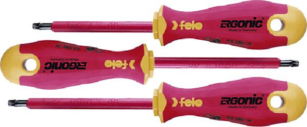 3-K VDE Schraubendrehersatz 3-tlg Patentierte Grifftechnologie, Griff passt sich flexibel der Anwenderhand an, ermöglicht länger ermüdungsfrei zu Arbeiten, Erreichung höheren max. Drehmoments bei gleichem Kraftaufwand, Gemäß IEC 60900:2004, Stück geprüft mit 10.000 V für sicheres Arbeiten bis 1.000 V, Bestehend aus: T15x100, T20x125, T25x125