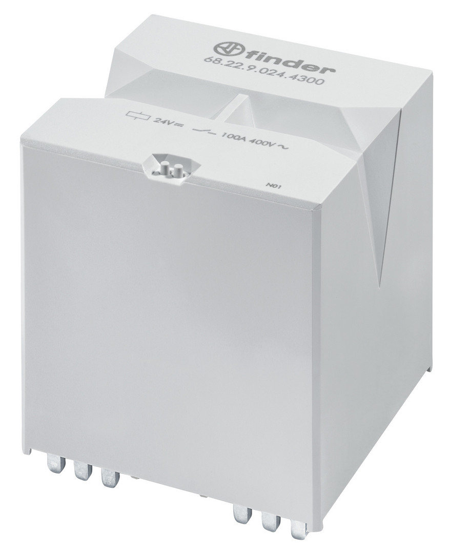 Leistungsrelais für Leiterplatte zum Einsatz in Wechselrichtern oder Ladesäulen, 2 Schließer für 100 A (AC1), max. Einschaltstrom 300 A - 1 ms, Brückenkontakte, Kontaktmaterial AgSnO2, Kontaktöffnung größer 3.6 mm, Nennspannung 400 V AC, max. Schaltspannung 690 V AC, max. Schaltleistung AC1/AC7a (400 V AC) 40.000 VA (pro Kontakt), max. Schaltleistung AC15 (230 V AC) 4.600 VA, 1-Phasenmotorlast, AC3-Betrieb (230 V AC) 2.2 kW, minimale Schaltlast 1000 mW bei 10 V/10 mA, Umgebungstemperatur -40 bis + 70 °C bei max. Kontaktdauerstrom und Ansteuerung innerhalb des Arbeitsbereichs, Umgebungstemperatur bis 85 °C im Energiesparmodus bei. max. Kontaktdauerstrom, Ansteuerungsbereich und Betrieb im Haltespannungsbereich, Spulennennleistung 2.9 W, minimale Halteleistung 0.7 W, Spulenspannung 24 V DC, Standardbetrieb: Arbeitsbereich 0.90 bis 1.1 x Un, im Energiesparmodus: 0.95 bis 2.5 x Un (kleiner 1 s), Haltespannungsbereich 0.5 x Un, Abstand zwischen Leiterplatte und Relais-Grundplatte zur Luftzirkulation beträgt 1,5 mm