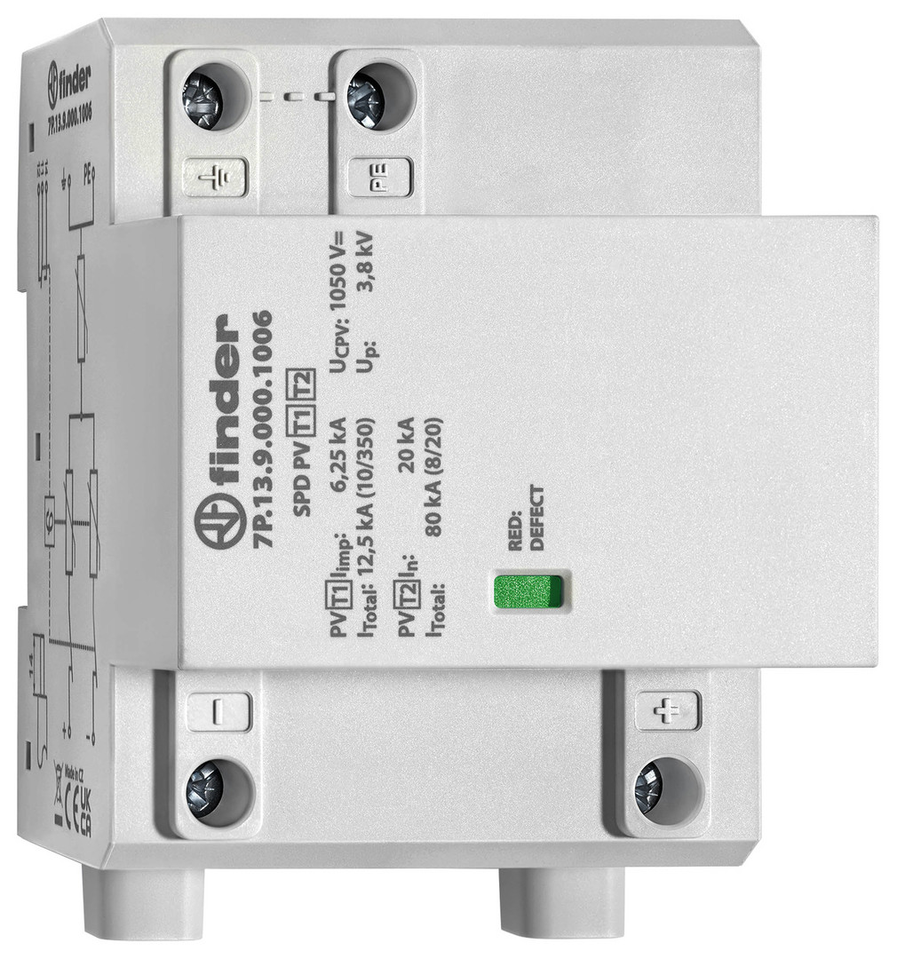| Kurzbeschreibung | Blitz- und Überspannungsableiter Typ 1 + 2, für Photovoltaikanlagen bis 1050 V DC, mit Status-Rückmeldekontakt |