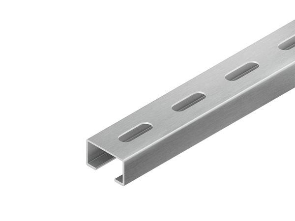 Montageschiene, C-Profil, gelocht, zur senkrechten / waagerechten Montage an ebener Wand und Decke, zur Aufnahme der Klemmschellen IK ... und Rohrschellen IPA ... mittels Schrägmutter mit Schraube NPB 06. für Klemmschellen : IK ... für Rohrschellen : IPA ... Abmessungen (ca. Maße) H x B x t : 20 x 27 x 2,6 mm Schlitzweite : 12 mm Profillochung : 7 x 20 mm mittiger Abstand : 35 mm Lieferlänge L : 6000 mm Oberfläche : stranggepresst / pressblank Werkstoff : Aluminiumlegierung