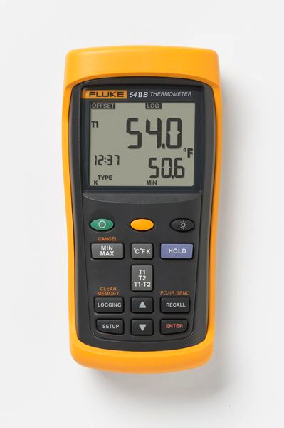 Die Kontaktthermometer der Serie Fluke 50 II bieten eine schnelle Ansprechzeit und die Genauigkeit eines Laborgerätes (0,05 % + 0,3 °C) in einem tragbaren Messgerät. Erfassen Sie Kontakttemperaturmessungen bei der Prüfung von Motoren, Isolation, Schaltern, Rohren, korrodierten Verbindungen, Flüssigkeiten und Leitern mit dem Branchenstandard entsprechenden Thermoelementen vom Typ J, K, T, E, N, R und S (Temperatursensoren).