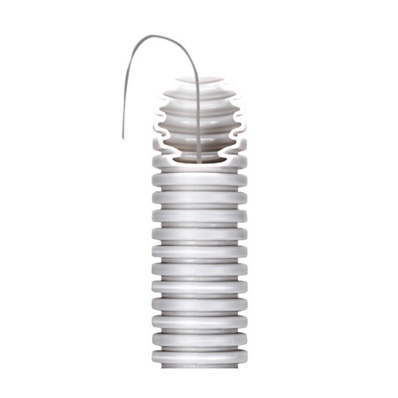 Elektroinstallationsrohr mit Zugdraht biegsam/selbstzurueckbildend nicht flammausbreitend ICTA nach DIN EN 61386-22 (VDE 605-22):2011-12 / DIN EN 61386:2004 + A11:2010 aus Propylen (PP) mit mittlerer Druck- und Schlagfestigkeit zur Verlegung in der Beton,- Estrich- und Unterputz-installation, sowie zur Verlegung in der Maschinen und Anlageninstallation. Einsatztemperatur -5°C bis +90°C. Farbe lichtgrau
