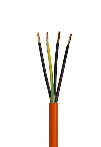 GIFAS-THERMFLEX-LeitungBeschreibung:- feindrähtig nach VDE 0295, Klasse 5- silikon- u. halogenfrei, ölresistent- Temperaturbereich: -35° C bis +100° C (kurzfristig bis 130° C)- hochhitzebeständig + flexibelAusführung:- 4 x 1,5 qmm- oranger Außenmantel (unbedruckt)- Aderkennung: 1-3 numeriert + grün-gelb