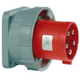 CEE-Einbaugerätestecker gerade 500 V, 63 A, 4-polig mit vernickelten Kontakten