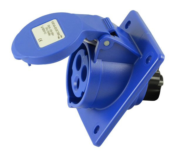 Kunststoff CEE-EinbausteckdoseAusführung:- 16 A, 3polig- 230 V- IP44- vernickelte Kontakte- schräge Bauform