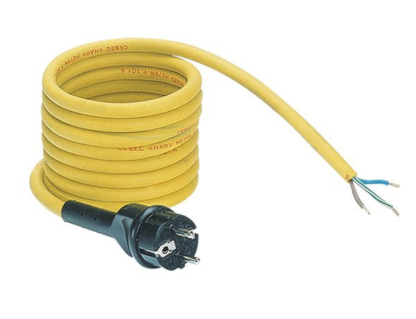 GIFAS-PROFLEXX-07-GeräteanschlussleitungLänge: 15 mQuerschnitt: 3 x 1,5 qmm Ausführung:- flexibel- mit gelben Außenmantel- mit anvulkanisiertem Schutzkontaktstecker, schwarz- auf der anderen Seite 150 mm abgemantelt, abisoliert und mit Aderendhülsen versehen