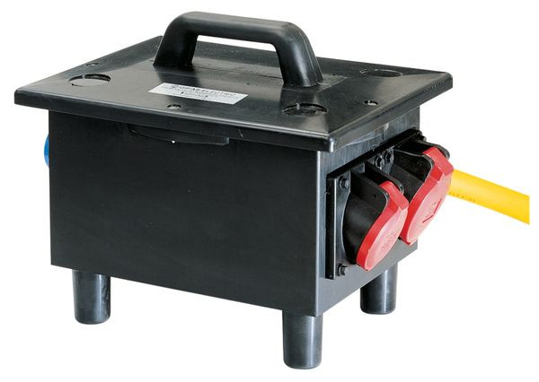 GIFAS Vollgummi-Sicherheitsverteiler Typ 6700Eingang: 3 m GIFAS-PROFLEXX-07 Leitung 5 x 6 qmm mit CEE-Stecker 5 x 32 A/400 VAusgang: 1 CEE-Einbausteckdose 5 x 32 A/400 V ohne Absicherung1 CEE-Einbausteckdose 5 x 16 A/400 V abgesichert über Neozed-Sicherungen 16 A3 Schutzkontaktsteckdosen 230 V abgesichert über Neozed-Sicherungen 16 A1 FI-Schalter 40/0,03 A, 4polig für alle SteckdosenAusführung: - Schutzorgane innenliegend unter dem Deckel (über 3 Schnellverschlußschrauben zu lösen)Abmessungen: H x B x T = 305 x 350 x 280 mmSchutzart: IP 54Gl-Faktor: 0,5Gewicht: ca. 12 kgEigenschaften:- Gehäuse aus schlagfestem Vollgummi mit hoher mechanischer Festigkeit- beständig gegen Säuren und Basen- sehr gute Wetter-, UV- und Ozonbeständigkeit- hohes elektrisches Isolationsvermögen- Steckdosen und andere Komponenten einzeln auswechselbar und VDE geprüft- Einhaltung aller gültigen elektrotechnischen Sicherheitsvorschriften der VDE