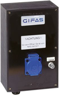 GIFAS Vollgummi-Verteiler Typ 2516Eingang:1 Kabelverschraubung M 20 von unten (Außendurchmesser der Leitung 7-14 mm) Ausgang:1 Schutzkontaktsteckdose ohne Absicherung Einbauten:- 1 Trenntransformator 120 VA, 230/230 V 50 Hz, nach DIN VDE 0570- 1 thermischer Überstromschutzschalter 0,6 A auf der Primärseite Abmessungen: H x B x T = 250 x 160 x 90 mmSchutzart: IP 54Gl-Faktor: 1,0Gewicht: ca. 2 kg