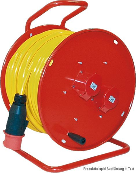 GIFAS-Stahlblechleitungsroller 504in Standardfarbe "signalrot" RAL 3001mit Rohrgestell und Thermo-ÜberlastschützEingang:25 m H07RN-F Leitung 5 x 10 qmmmit CEE-Stecker 5 x 63 A/400 VAusgang:1 CEE-Einbausteckdose 5 x 63 A/400 Vohne Absicherung Abmessungen: H x B x T = 572 x 440 x 360 mmSchutzart: IP X4Gl-Faktor: 1Gewicht: ca. 40 kg