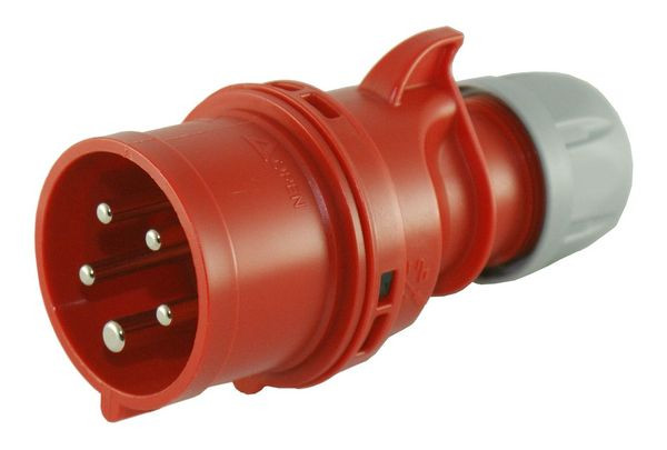 Kunststoff CEE-SteckerAusführung:- 400 V, 32 A- 5-polig- IP X4- vernickelte Kontakte- mit Verschraubung als Kabeleinführung