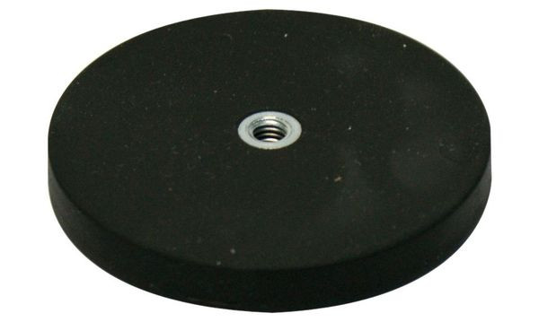 Haftmagnet Maße: 66 x 8,5 mmGummimantel: schwarzGewindebuchse: M6Gesamthöhe: 8,5 mmohne O-Klammer