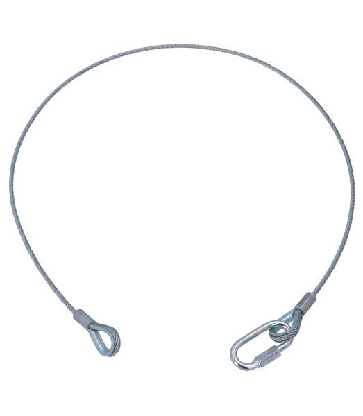 DeltaLUXX Fangseil mit Sicherungselement Länge: 100 cmDurchmesser: 4 mmBelastbarkeit: 15 kgEigenschaften:verzinktes Sicherungsseil nach DIN56927 aus Stahldrahtseil EN 12385beidseitig nach EN 13411-3 verpresste Kausche BF DIN 6899 RW 4in einer Kausche: Schnellverbindungsglied DIN 56926 - B - 90Öffnungsweite 7 mm mit Label
