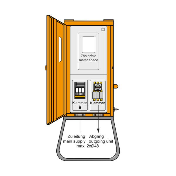 GIFAS-Baustromverteiler BSV Anschlussschrank mit 55kVA Abmessungen: B x H x T = 500 x 970 x 285 mmSchutzart: IP 44 (Bedienfront IP21)Gewicht: ca. 33 kg Eingang:5x35qmmmit NH-Sicherungslasttrennschalter Gr.00/100A / Klemmen 5x35qmm1 Zählerplatz Ausgang:5x35qmmLasttrennschalter mit NH-Sicherung Gr.00/80A / Klemmen 5x35qmm Ausführung:- Gehäuse aus Stahlblech verzinkt, Pulverbeschichtung RAL2000 (gelborange)- Bodengestell feuerverzinkt- Tür mit selbstschließendem Fallriegel (VA), abschließbar durch Vorhängeschloss- Kranösen schwenkbar nach DIN EN 61439-4 (VDE 0660-600-4):2013-XX "Niederspannungs-Schaltgerätekombinationen -Teil 4 Besondere Anforderungen an Baustromverteiler" (IEC 61439-4:2013)