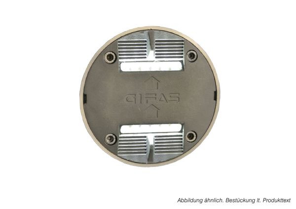 TrafficLED Leuchtmodul V4A, bestehend aus: - TrafficLED Oberteil- TrafficLED Vergusselektronik komplett vergossen im Edlestahl-Gehäuse einseitig 6 x LED- Lichtfarbe: blau Stromaufnahme bei 28-44 VDC 50 mA