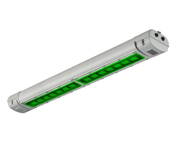 Spartan Ex-Langfeldleuchte 84LEDs Grün mit Akkupack für SicherheitsduschenExplosionsgeschütze LED Langfeldleuchte 2ft / Zonen 1,21 /ATEX und IEC Ex für Gas und StaubKennzeichnung: Ex II 2 G D - Ex e mb op is IIC T4 Gb, Ex tb IIC T75°C Db Ex-Zonen: 1, 21Lichtquelle: LED, grünSystemleistung: 32 WLichtfarbe: Grün, 519nmFarbwiedergabe: Ra >80Abstrahlwinkel: 120°Eingangsspannung: 110...254 VAC (50/60Hz)Lebensdauer: >50.000 hTemperatureinsatzbereich: -20° - +50°CSchutzart: IP67Schutzklasse: IGewicht: 7 kgMaße (HxBxT): 775x174x108mmGehäuse: Aluminium LM6, pulverbeschichtetAbdeckung: PC Akkupack für Notlichtfunktion:Statusanzeige über dreifarbige LED Statusanzeige, SelbstüberwachungKapazität: 2,5AhLadedauer: 20hBetriebsdauer in Notfall: 3 Stunden bei 25% Leistung