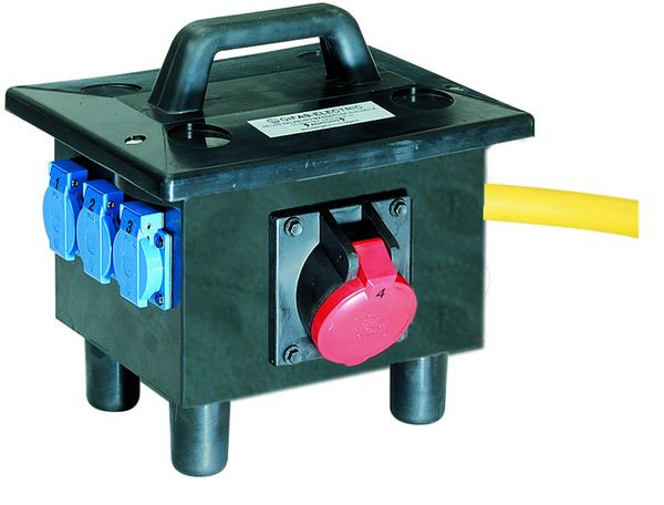 GIFAS Vollgummi-Sicherheitsverteiler Typ 6700mit PRCD-S 16A/400V Eingang:1 m GIFAS-PROFLEXX-07 Leitung 5 x 2,5 qmm Typ: H07RN-F, Mantelfarbe: gelb mit CEE-Stecker 5 x 16 A/400 V Ausgang:1 CEE-Einbausteckdose 5 x 16 A/400 V, abgesichert über 1 Leitungsschutzschalter 16A, 3polig in C-Charakteristik 3 Schutzkontaktsteckdosen 230 V, abgesichert über 3 Leitungsschutzschalter 16A, 1polig in B-Charakteristik Einbauten:1 PRCD-S 5polig, 400 V, 16 A, 50 Hz, 30 mA Ausführung:- Schutzorgan innenliegend unter dem Deckel (über 2 Schnellverschlussschrauben zu lösen) Abmessungen: H x B x T = 305 x 350 x 280 mmSchutzart: IP 54Gl-Faktor: 0,5Gewicht: ca. 12 kg Eigenschaften:- Gehäuse aus schlagfestem Vollgummi mit hoher mechanischer Festigkeit- beständig gegen Säuren und Basen- sehr gute Wetter-, UV- und Ozonbeständigkeit- hohes elektrisches Isolationsvermögen- Steckdosen und andre Komponenten einzeln auswechselbar und VDE geprüft- Einhaltung aller gültigen elektrotechnischen Sicherheitsvorschriften der VDE