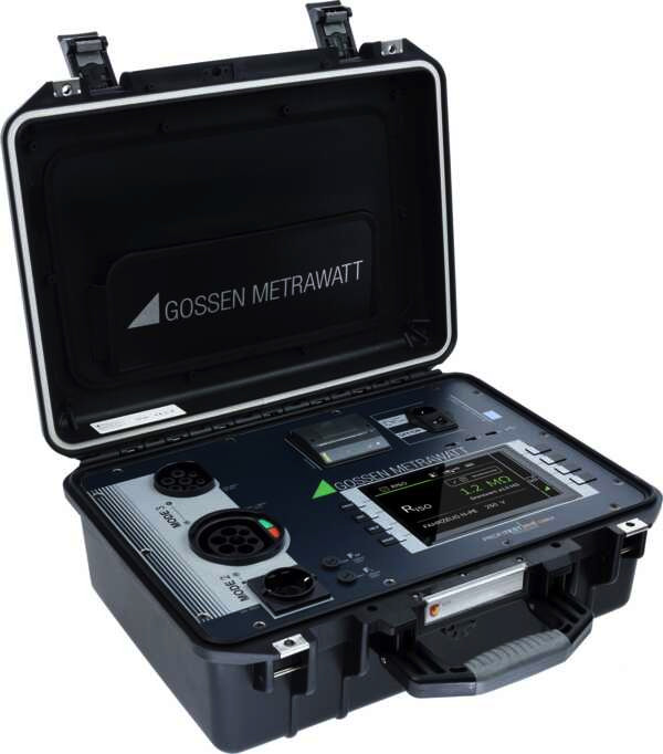 Tester zur normkonformen Prüfung von Ladeleitungen. Der PROFiTEST H+E CABLE dient zur normgerechten Prüfung von E-Ladeleitungen Mode 2 IC-CPD und Mode 3.. Einsatz als Tester von E-Ladeleitungen Mode 2/3 Laut DGUV Vorschrift 3 müssen ortsveränderliche elektrische Betriebsmittel regelmäßig geprüft werden. . Automatischer Prüfablauf nach Herstellerangaben Herstellerdatenbank Einzelprüfungen durch Elektrofachkräfte, Passwortgeschützt Anschluss einer Tastatur, Barcode- und QR-Codeleser zur Eingabe Direkter Anschluss von Ladeleitungen Mode 2 / 3 Prüfung von 1-und 3-phasigen Ladeleitungen . Mobiler Einsatz – die Prüfung kann direkt an einem beliebigen Ort durchgeführt werden! Intuitives Bedienkonzept! Mehr Effizienz dank Prüfsequenzen nach Herstellerangaben! Anschluss einer Tastatur bzw. eines Barcode- oder QR-Codelesers zur einfachen Eingabe von Daten! Ausdruck des Prüfprotokolls vor Ort. Das Gerät PROFiTEST H+E CABLE dient der normgerechten Überprüfung von Ladeleitungen für Elektrofahrzeuge. Es ist für die Überprüfung von Ladeleitungen Mode 2 (IC-CPD) und Ladeleitungen Mode 3 ausgelegt. Es werden folgende Prüfungen durchgeführt: RLO Niederohmige Durchgängigkeit des Schutzleiters RISO Isolationswiderstand RCD AC-Auslösestrom und -zeit Prüfung DC Sensorik 6 mA Auslösezeit /-strom Simulation L/N/PE Funktionsprüfung Status B,C,E. Der Prüfablauf beinhaltet Sichtprüfung, Funktionsprüfung, elektrische Prüfung und Protokollierung und erfolgt automatisch oder mittels Einzelprüfungen durch eine qualifizierte Elektrofachkraft. . Prüfen von Ladeleitungen Mode 2 (1-/3-phasig) sowie Mode 3 Elektrische Prüfungen: - Niederohmige Durchgängigkeit der Leiter - Isolationsmessung - RCD Prüfung AC (Auslösezeit und -strom) - Prüfung der 6 mA Sensorik (RDC-DD, RCMB, CCID…) - Differenzstrommessung - Spannungsmessung - Widerstandsmessung PP (Strombelastbarkeit nach IEC/EN/VDE) - Sichtprüfung vorausgewählt, - Funktionsprüfung: CP-States (A,B,C,E) - Universeller Netzspannungseingang (110-240 V, 40-65 Hz) - Diverse Adapter zum Anschluss von Ladeleitungen - Integrierter Drucker zum Ausdruck von Prüfprotokollen Integrierter Datenspeicher . Automatische Prüfabläufe für Ladeleitungen Mode 2 (1-/3-phasig), Ladeleitungen Mode 3 Anwendung von elektrisch unterwiesenen Personen (EuP), Elektrofachkräften und Personen mit erfolgreicher Qualifikation zur Fachkundigen Person für Hochvoltsysteme der Stufe 2 oder höher im gewerblichen Umfeld Herstellerdatenbank Universelles Zubehör im Lieferumfang . 1x PROFITEST H+E CABLE 1x Adapter Schuko-CEE 32 A 1x Adapter Schuko-CEE 16 A 1x Adapter Schuko-Camping CEE 16 A blau 1x Netzanschlussleitung 1x Rolle Thermopapier für Drucker 1x Werkskalibrierschein 1x Kurzbedienungsanleitung DE, GB