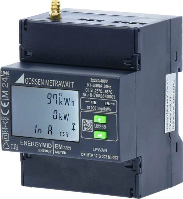 Energiezähler mit Unterstützung des LoRaWAN® Protokolls. Die Energiezähler ENERGYMID EM LPWAN mit Unterstützung des LoRaWAN®-Protokolls bietet die vollumfängliche Funktionalität eines MID-zertifizierten Energiezählers in Verbindung mit einer innovativen Funkschnittstelle zum kleinen Preis. Perfekt geeignet für die dezentrale Energiedatenerfassung und das Internet der Dinge. . Die innovativen Energiezähler ENERGYMID EM LPWAN mit Unterstützung des LoRaWAN®-Protokolls ermöglichen dank der drahtlosen Kommunikationstechnologie einfache und sichere Energiedatenerfassung auf einer neuen Ebene. Dank Funkschnittstelle und MID-Zertifizierung bieten die Zähler die perfekte Lösung für dezentrale und rechtssichere Energiedatenerfassung von Energiemonitoring bis Verbrauchsabrechnung – und das alles ohne Verkabelungsaufwand und einfach in der Installation. Take it easy!. Multifunktionaler Energiezähler mit MID-Zertifizierung für Direkt- oder Wandleranschluss sowie 2-,3- oder 4-Leiter-Netze (typenabhängig) Integrierte Funkschnittstelle auf Basis des LoRaWAN® - Standards im kompakten 4 TE-Gehäuse Kein Batteriewechsel notwendig durch Versorgung der Schnittstelle aus der Messspannung Funktionsupdate der Schnittstelle via FUOTA 4 Quadrantenmessung: Energiebezug und -abgabe Erfassung von THD für Strom und Spannung sowie Neutralleiterstrom IN Weitere Schnittstellen innerhalb der Serie vorhanden: M-Bus, LON, Modbus TCP / BACnet, Modbus RTU, Impulsausgang . PLATZSPARENDER Integrierte Schnittstelle für die Anbindung an Erfassungs- und Optimierungssysteme Integriertes beleuchtetes Display zum Ablesen von Parametern und Einstellungen Manipulationsschutz mit plombierbarer Abdeckung und Parametriersperre SCHNELLER INSTALLIERT Schnellere Installation durch Fehlererkennung mit Farbwechsel am Display Einfache Fehlererkennung durch Überwachung der Installationsparameter wie beispielsweise Drehfeldrichtung. Massiv reduzierter Verkabelungsaufwand aufgrund Wegfalls der kabelgebundenen Kommunikation. KOSTENEFFEKTIVER Sofort für Abrechnungszwecke geeignet dank MID-Zertifizierung Kein Batteriewechsel für Funkschnittstelle notwendig durch Versorgung aus der Messspannung. INTEGRIERBAR Integrierte funkbasierte Schnittstelle mit Unterstützung des LoRaWAN® - Protokolls Einfache und effiziente Einbindung in vorhandene LoRaWAN® - Netzwerke Kabelgebundene Schnittstellen wie M-Bus, Modbus und TCP ebenfalls verfügbar UNIVERSELL Energiezähler für den Direkt- und Wandleranschluss (Typabhängig) Energiezähler für 2-, 3- und 4-Leiter-Netze (Typabhängig) ZUKUNFTSSICHER Funktionsupdate der Schnittstelle via FUOTA (setzt entsprechendes Backend voraus). Netzüberwachung durch Erfassung von THD für Strom und Spannung sowie des Neutralleiterstroms IN . Der Energiezähler ENERGYMID LPWAN mit Unterstützung des LoRaWAN® - Protokolls kann zur dezentralen Energiedatenerfassung in allen Bereichen der elektrischen Energieversorgung eingesetzt werden und stellt über eine geeignete LoRaWAN®-Infrastruktur Daten für Energiemonitoring und Energiemanagementsoftwaren zur Verfügung. Dank MID-Zertifizierung können die Daten auch für Verbrauchsabrechnung und Energiecontrolling wie beispielsweise interne Kostenstellenzuordnung verwendet werden. Einsatzgebiete: Dezentrale Energiedatenerfassung in der Industrie für einzelne Linien oder Maschinen. Erfassung dezentraler Verbraucher ohne kabelgebundene Kommunikation. Einsatz in mobilen Zählerplätzen wie z.B. Baustromverteiler. Einfache und kostengünstige Energiedatenerfassung und Verbrauchsverrechnung bei Messen, Campingplätzen, Häfe