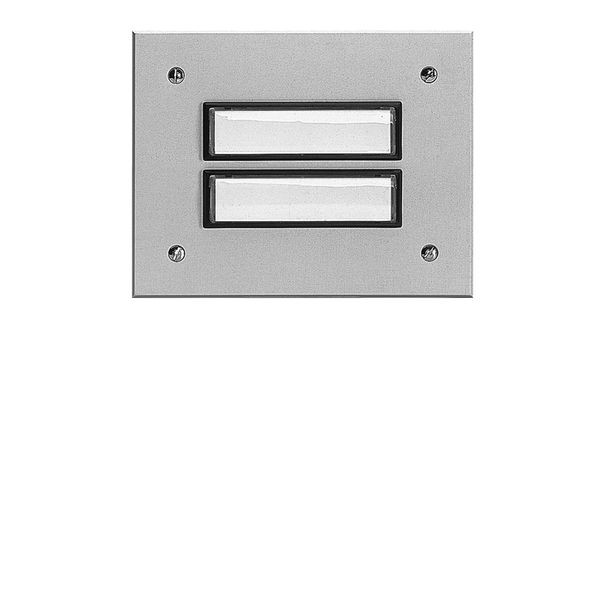 Aluminium, silber eloxiert, Unterputz-Montage, beleuchtbar, Anzahl Flächentaster siehe Bestellübersicht, incl. 1 Licht-Schild (rot), witterungsbeständig, Befestigungsbohrungen: jeweils 16 mm von Außenkante