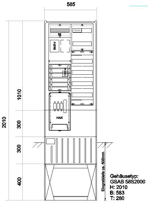 | Kurzbeschreibung | Zähleranschlusssäule Bayernwerk (1Zähler BKE-I) mit Verteiler 4x12TE |