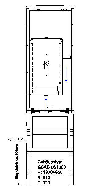 | Kurzbeschreibung | Freiluftschrank mit HAK NH2 250A HxBxT:2320x605x320 mit Montageplatte und Doppelschließung |